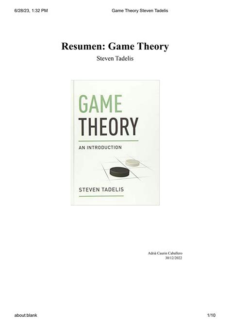 Download Steve Tadelis Game Theory Solution Epub By Click Button. Steve Tadelis Game Theory Solution it’s easy to recommend a new book category such as Novel, journal, comic, magazin, ect. You see it and you just know that the designer is also an author and understands the challenges involved with having a good book. You can easy klick for detailing book and you can read it online, even you can download it